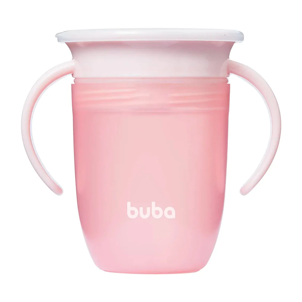 Copo de Treinamento 360º com alça.Capacidade para 210 ml.Permite beber sem derramar.Possui válvula de silicone antivazamento.Recomendado para crianças maiores de 12 meses.Livre de BPA e ftalatos.Produto 100% atóxico.Composição: 26% silicone e 74% polipropileno (PP).As cores dos produtos podem sofrer variações em função das características do monitor, e do ambiente quando foram fotografadas. Afinal, seu bebê merece o melhor!